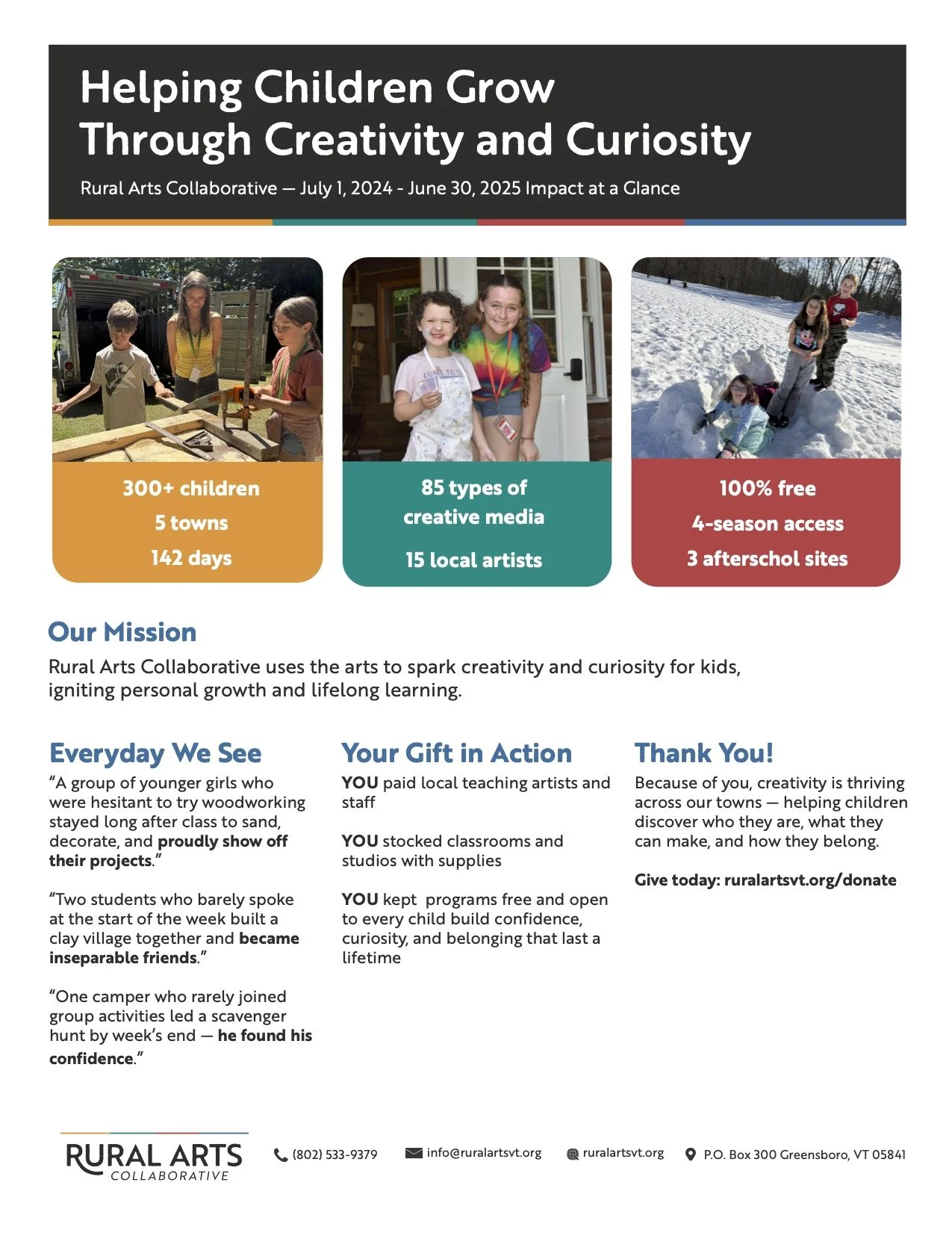 Wonder & Wisdom and The Art House expand their collaboration into a formal merger of the two organizations. Now known as WonderArts, the community-based nonprofit will be offer more diverse, expansive, and creative opportunities to the communities of Craftsbury, Greensboro, Hardwick, and beyond. With a continuing focus on the cultivation of learning and exploration, WonderArts seeks to enrich our community, schools, and economy through creativity, conversation, and collaboration focused on the arts, recreation, and innovative programming that will serve multiple generations.